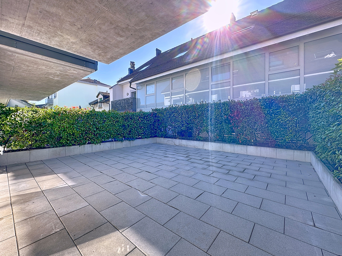 À l’extérieur, une vaste terrasse d’environ 40 m² offre un espace privilégié pour profiter des beaux jours, dans un environnement calme.