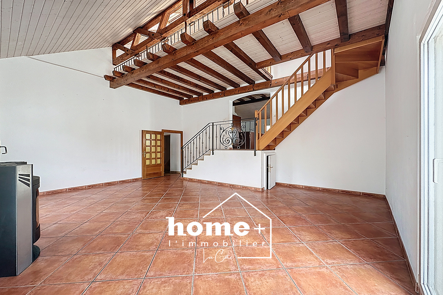 La maison offre un espace de vie chaleureux, sublimé par un poêle à bois et une mezzanine baignée de lumière, idéale pour un coin bureau ou détente. La cuisine ouverte s’intègre parfaitement à l’ambiance conviviale de la salle à manger. Avec ses cinq chambres, dont une pièce de 35 m², chacun y trouvera facilement son espace.